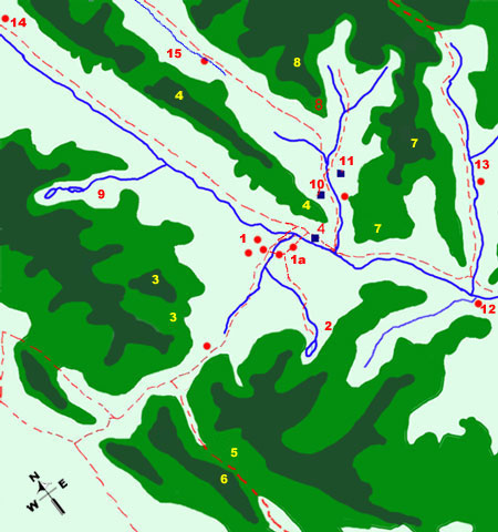 Note - some places are unnamed on maps and the names are given by Ray